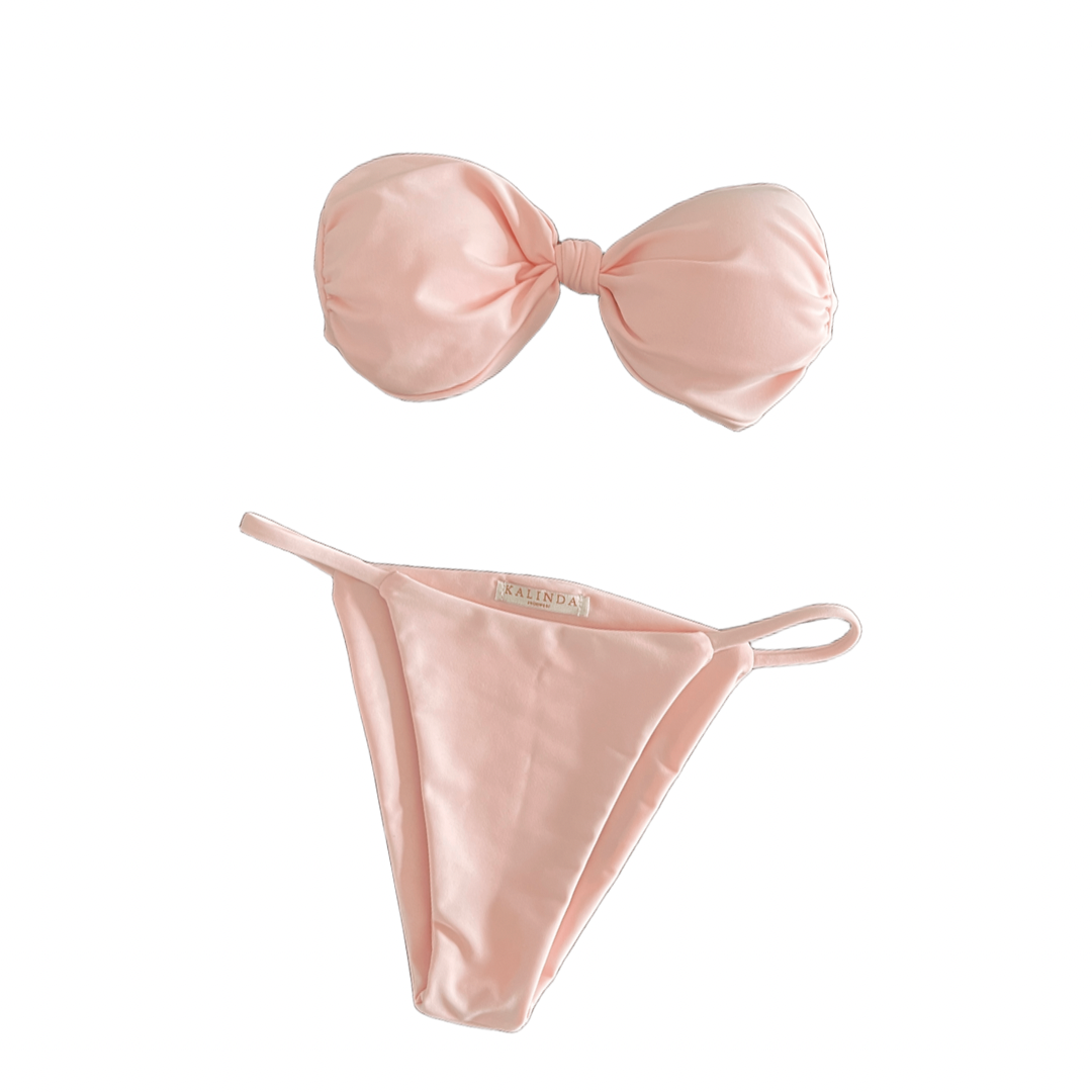 "Perla", nuestro tesoro del mar, combina sensualidad y elegancia en un diseño sofisticado. Su top strapless con detalle de nudo al centro realza tu figura con un toque chic y moderno. La parte inferior cuenta con dos tiras laterales ajustables, permitiéndote llevarlo a la cadera o cintura para un efecto estilizado. Perfecto para la playa, el sol y cualquier escapada tropical. Siéntete segura, cómoda y deslumbrante con "Perla", el bikini ideal para brillar con estilo esta temporada.